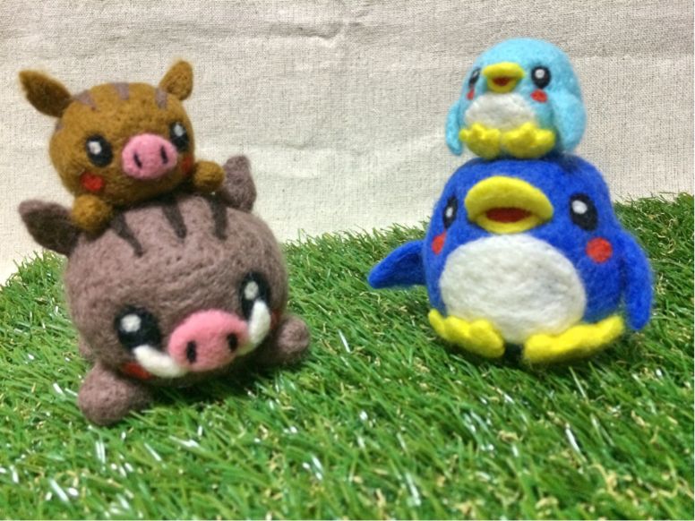 イノシシさん親子とペンギンさん親子(*/ω\*)